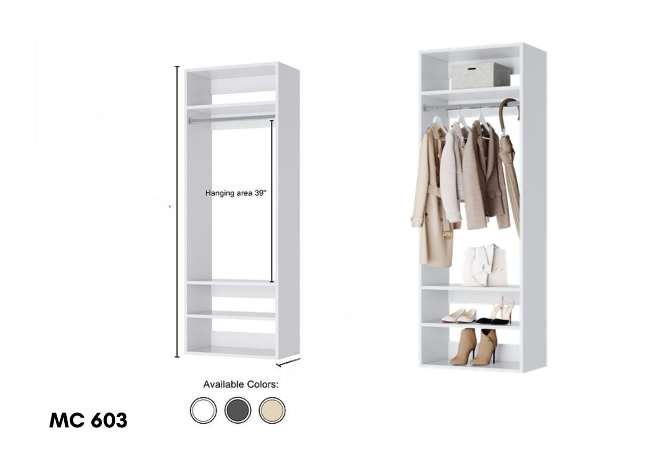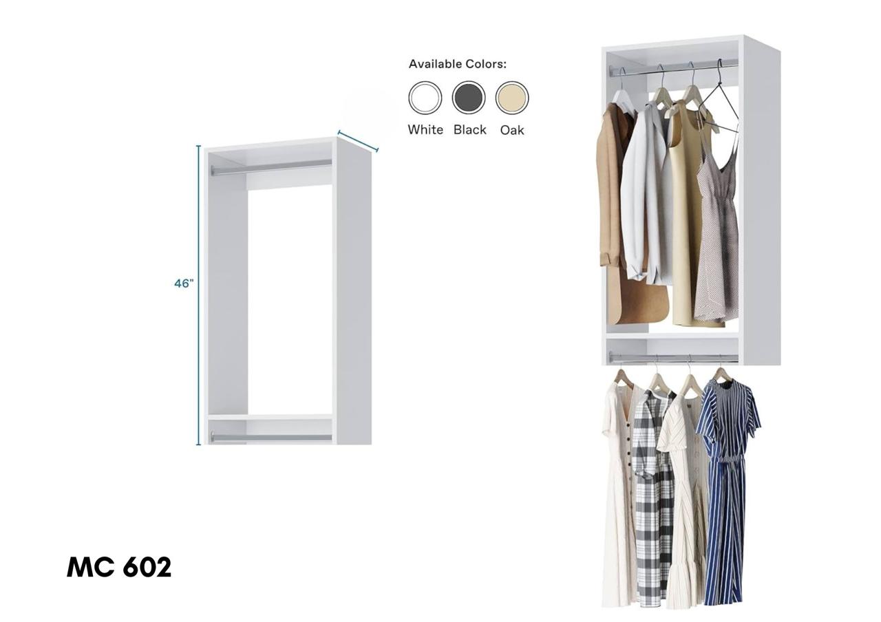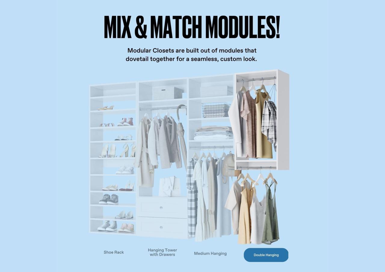 Double hanging This multi-level hanging unit is designed to maximize your closet space. It’s easy to install, and comes with 2 hanging rods suitable for shorter garments, like shorts and skirts.